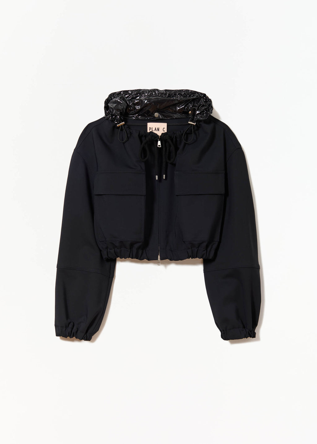 ビスコースフェイル フード付きギャザーネックブルゾン