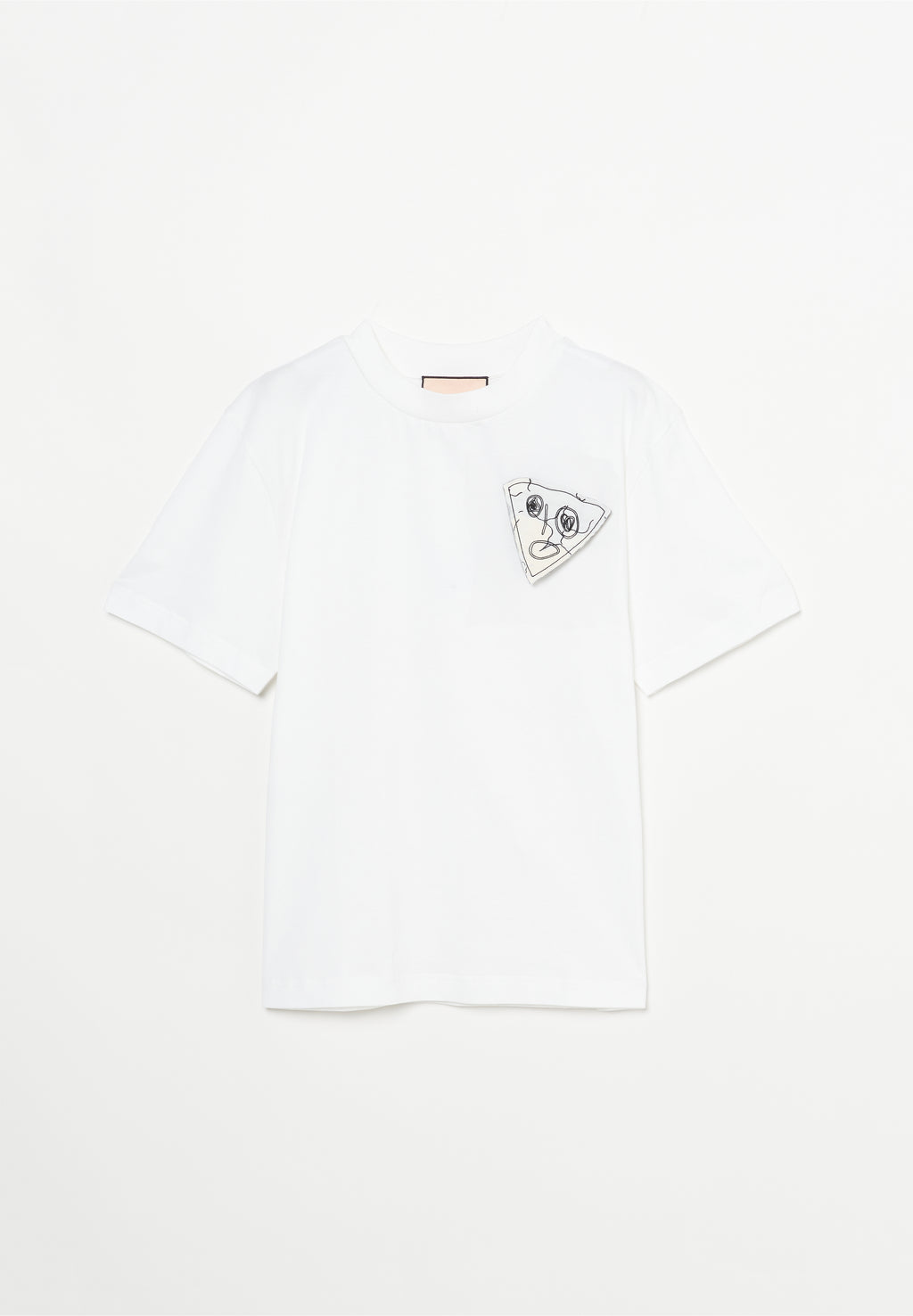アーカイブファブリックを丁寧にアップサイクルさせたスペシャルなピンが付いたTシャツ。アイコニックなBiancaのデザインがスタイリングに遊び心とエレガンスをプラス。 SS23コレクションで登場した、都会的に再構築されたカラフルなストライプのアーカイブファブリックです。